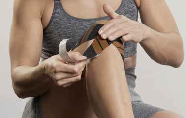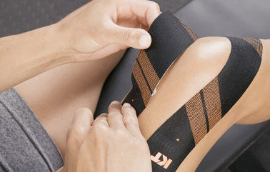 適度にストレッチをかけながら膝の皿に沿ってテープを貼ります。
